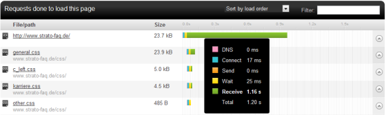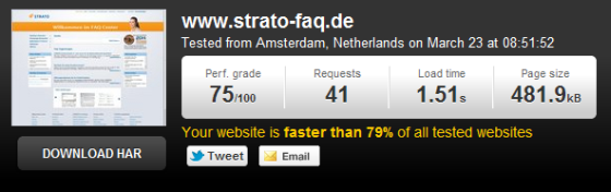 Bei einem Test von www.strato-faq.de über https://tools.pingdom.com/ ergibt sich in etwa folgendes Bild: