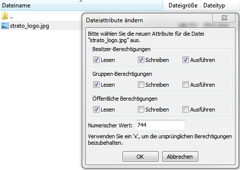 Diese Datei erhält daher den CHMOD-Wert "744".
