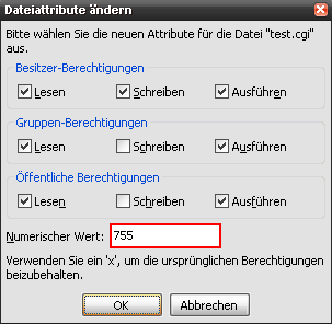 Dies entspricht dem Unix-CHMOD 755: