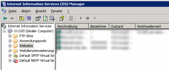 Anmerkung: Falsch konfigurierte HostHeader sind eine häufige Fehlerursache. Bitte achten Sie darauf, dass die Kombination aus IP-Adresse und Hostheader stets einzigartig ist. Gleiche HostHeader in verschiedenen virtuellen Servern können u.a. dazu führen, dass sich einer der beiden Server nicht mehr starten lässt.