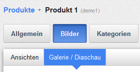 Außerdem haben Sie die Möglichkeit, für das Produkt eine Diashow einzurichten, das heißt, Ihren Kunden wird beim Betrachten des Produktes in bestimmten Zeitabständen ein neues Bild gezeigt. Klicken Sie dazu auf Galerie/ Diaschau.
