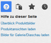 Weitere Informationen und Hinweise zum Einstellen von Bildern und zum Festlegen der Verwendung einzelner Bilder sowie zum Einrichten und Anwenden der Diashow finden Sie im Hilfecenter.Um direkt zur kontextbezogenen Hilfe zu gelangen, klicken Sie ganz einfach auf den Reiter mit dem Fragezeichen.