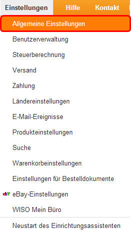 Zum Ändern des Logos und des Slogans Ihres Webshops wählen Sie aus der oberen Menüleiste des Administratorbereiches den Punkt Einstellungen. Im folgenden Untermenü klicken Sie auf den Reiter Allgemeine Einstellungen.